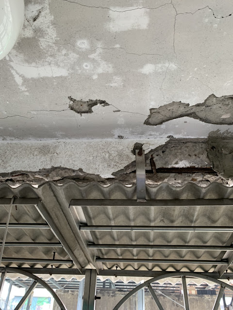 5.以純水泥+輕質沙填補鏽爆處(增加結構強度補強)分多次填補整平粉光完成